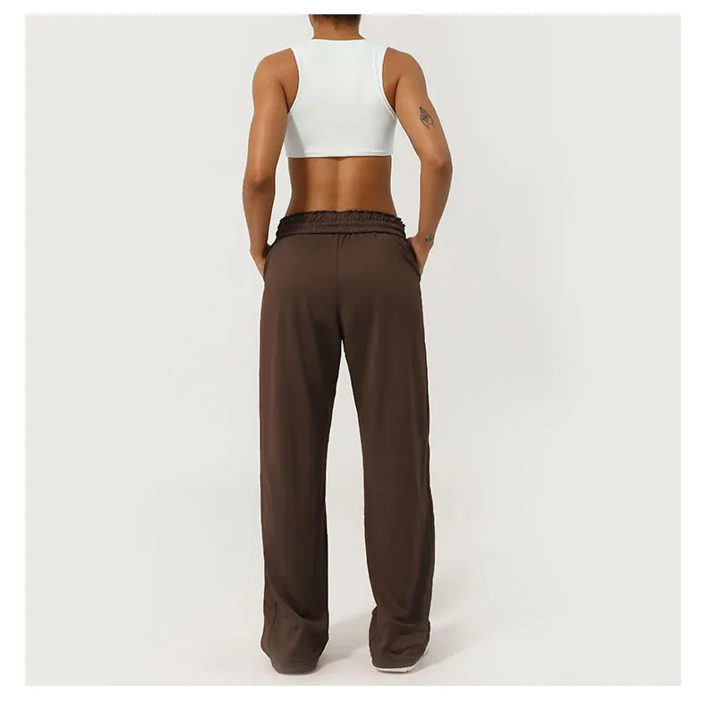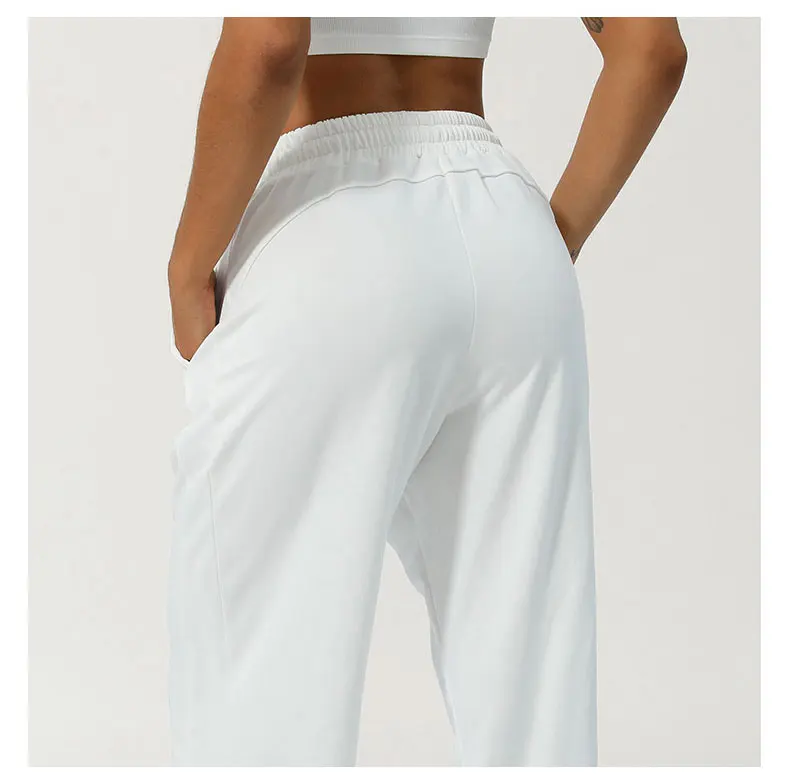 Calça Esportiva Feminina Cintura Alta com Bolso Lateral Perna Larga para Corrida Treino e Academia